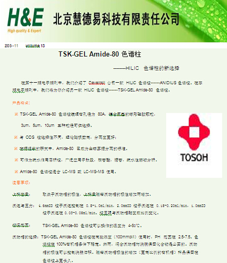 本期簡介: DAISOGEL ODS-AP 色譜填料 由于具有極高的表面鍵合覆蓋率,DAISOGEL ODS-AP 色譜填料非常適合分離各種不同性質有機化合物。DAISOGEL ODS-AP 在生產過程中進行了完全封端的處理,因此,對酸性、堿性以及螯合物樣品具有優越的分離性能。硅膠填料的孔徑有 60?、100?、120? 和200?、300? 五種選擇,對快速分析來說,200? 填料兼顧了樣品的負載率,分析速度以及溶劑消耗諸方面的因素,是比較理想的選擇。