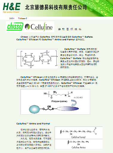 本期簡介: Chisso 公司生產的 Cellufine 親和層析填料主要包括 Cellufine? Sulfate,Cellufine? ETclean 和 Cellufine? Amino and Formyl 三種類型。