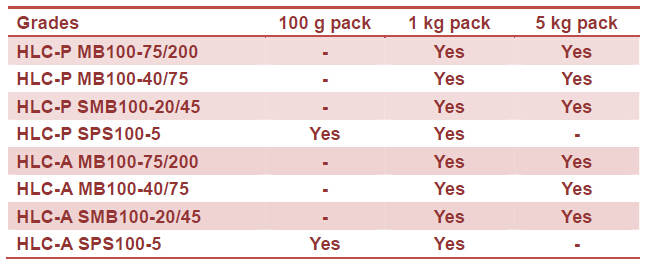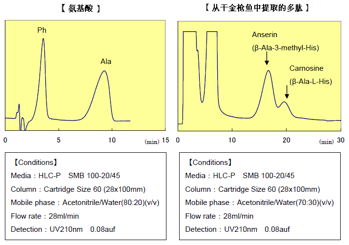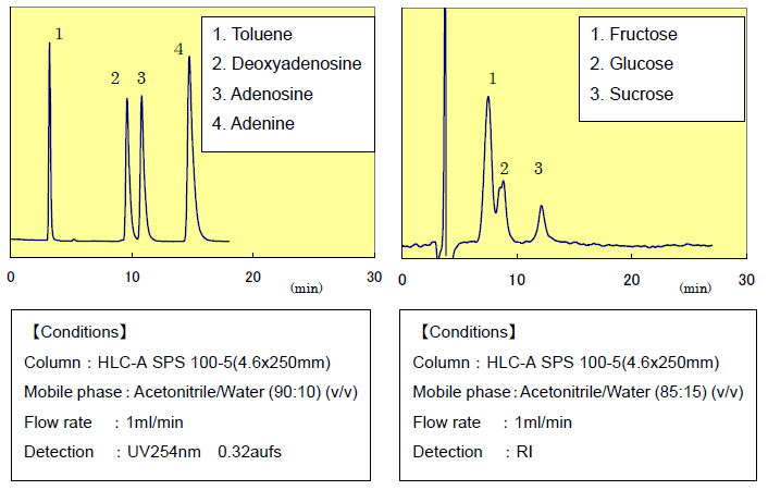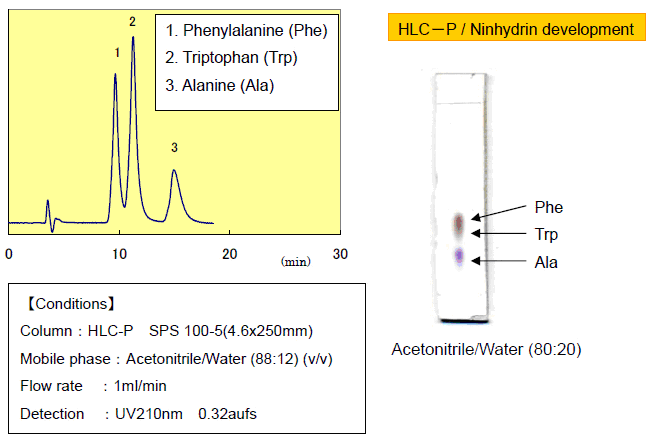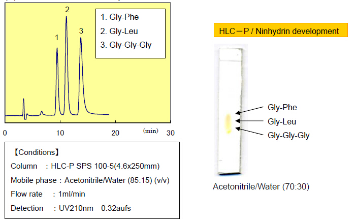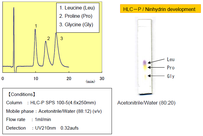 HILIC模式和反相模式是互補的。富士硅化學有限公司開發了兩款HILIC模式的填料,命名為“HLC”硅膠。兩種HLC硅膠都含有兩性的官能團,共價鍵合在硅膠表面?!?/span>HLC-A”用于分離純化有機酸、核酸和糖類;“HLC-P”用于分離氨基酸、多肽。