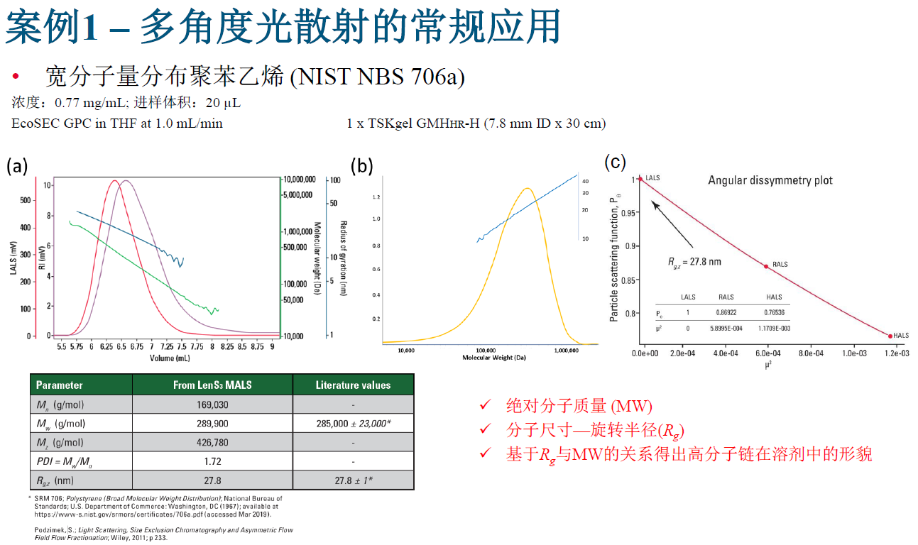 ? ? ? ?光散射是測量聚合物、蛋白質(zhì)、多肽化合物以及其他多種復(fù)雜結(jié)構(gòu)大分子的絕對分子量以及尺寸的最常用表征手段。通過與HPLC或者GPC聯(lián)用,光散射可作為表征和探索大分子的結(jié)構(gòu)、構(gòu)型和組成的利器