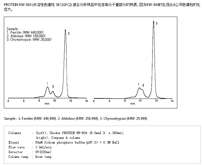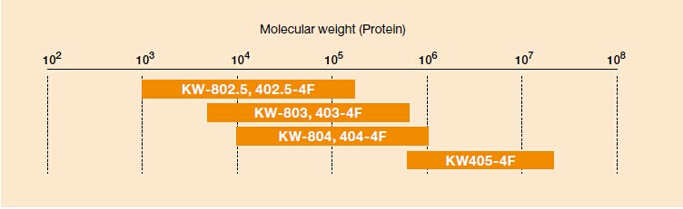 KW-804色譜柱是硅膠基質的水溶性SEC色譜柱,適用于蛋白質和酶的分析。