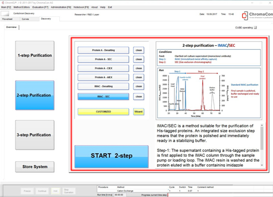 ? ? ? ?Contichrom Discovery層析系統為ChromaCon公司最新上市產品,具有可擴展的標準批處理功能(Batch)及整合化多步純化功能,其采用高度自動化設計,最大限度地降低了對使用者的技術要求。