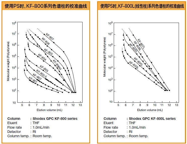 GPC KF-802.5是標準的油溶性SEC色譜柱,適用于從低分子量到高分子量的寬范圍的樣品。流動相是THF。