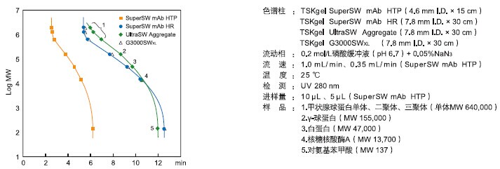 TSKgel UltraSW Aggregate柱的蛋白質(zhì)校準(zhǔn)曲線