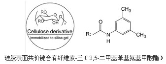 IB耐溶劑型手性柱,硅膠表面共價鍵合有纖維素-三(3,5-二甲基苯基氨基甲酸酯)。溶劑使用無限制,廣泛的溶解條件,可使用任何互溶的溶劑作為流動相、溶解樣品、手性柱再生。